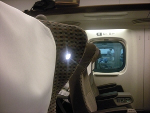 2+2のゆったりしたシートは、身体のあちこちが痛んでいる私にはありがたいことこの上にない。また読書灯やコンセントまで装備した特殊シートと、おしぼりなどの車内サービスはエグゼクティブを感じさせる。とは言うものの、やはりサービスの対価としては料金が高すぎるし、人間、このような特別待遇を受けている内に自分自身を勘違いしてしまうのだろうなと思った次第(芸人なども、移動でグリーン車を利用できるようになる頃から自分を「大物」と勘違いし、それと共に肝心の芸の方が全く面白くなくなる輩が多い)。多分私自身はこれを利用することは二度とないだろうななんて想いが頭をよぎるのであった(またポイントでも溜まれば別だが)。人間、贅沢になれてしまうところから堕落が始まるのである。また特別扱いとは人を駄目にする麻薬である。そう言う点でも、やはり国会議員にグリーン車を利用させるべきでないとつくづく感じるのであった。一度彼らをムーンライトながらか夜行バス辺りで上京させれば、少しは国民の目線にも立てるようになるのではなかろうか。