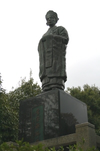 雪舟像と雪舟の墓 前方後円墳の小丸山古墳 さて当初の予定では今日の予定は後一カ所のみなのだが、大分予定よりもタイムスケジュールが早く進行しており、このままでは無意味にホテルに早く入って暇を持て余すことになりかねない。これは困ったと考えていると、この施設が配っている資料に「雪舟さんドライビングコース」なるものが書いてある。それによると雪舟ゆかりの寺院が近郊にあるとのこと。とにかくこのままではすることがないので、そのプランに乗っかることにする。それにしても私がつくづく貧乏性だと思うのは、ボーっと暇をつぶすということができないところなんだよな・・・。