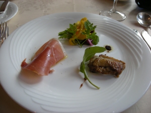 展覧会を観賞し終わった時にはすっかり昼時になっていた。実は今日のお昼をどこでとるかについては全く計画していない。面倒くさいこともあったので、ここのレストランでランチコース(3800円)をとることにする。
