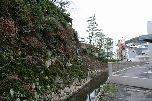 駅が石垣上に乗っかっているのが分かる 線路をくぐると本丸へ向かう。新幹線三原駅の下に投資の石垣の遺構らしきものが見える。これを見ただけで駅がまともに城の上に乗っかっているのが分かる。以前に来た時には石垣の上から見下ろしただけだから今一つイメージ出来なかったが、下から見上げるとかなり立派な高石垣である。また周囲の堀の幅も広く、この城の南方は海だったことを考えると、かなり堅固な構えだったことが伺われる。