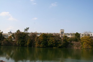 やがて目の前に巨大な堀が見えてくる。これは二の丸を取り囲む堀になるらしい。現在は二の丸は学校になってしまっているが、堀や石垣は当時のまま残っている模様。これが予想以上に立派で驚く。この城は筒井順慶が整備し、その後に豊臣秀長が拡張、江戸時代以降は松平、本多、柳沢など親藩、譜代系で城主が転々としたようである。この中で一番の大身代は秀長であるので、この時にかなりの拡張整備がなされたようである。現在は建造物は残っていないが、追手門や一部の櫓が近年に復元されている。