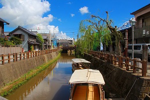 10分以上歩いてようやく重伝建地区に到着する。重伝建地区は水郷周辺の風情のある通りで町並みは江戸時代頃の風情を湛えている。しばし水郷沿いを散策。伊能忠敬がこの辺りの出身とのことで彼の生家もあるのだが、残念ながら修理中で立ち入り禁止である。