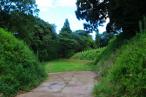 左 園池跡 中央 奥ノ山 右 間の堀切 奥ノ山はいわゆる二の丸。奥には倉跡もつながっており、全体では先ほどの城山以上の面積がある。奥には千葉氏の守護神であった妙見宮の跡も残っている。ここにはかつては多くの建物が建てられていただろうと想像できる。