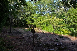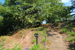 左 先に進んでいくと 中央 堀切を越えた先に 右 二の丸がある 二の丸の先にはかなり大規模な堀切があり、これが二の丸の東側を守護している。二の丸から南に降りた先に三の丸がある。しかしここは薮化がひどくて全体像はよく分からない。なお案内看板によるとここは地元の人に「さんのうまる」と呼ばれていたことから三の丸で間違いないとのことなのだが、下に山王宮もあることだし、三の丸でなくて「山王丸」ということはないだろうか? この曲輪は最前線の出曲輪の色彩が強いし、三の丸というのなら、あの馬場の方がよっぽどそれらしい気もするのであるが。個人的には馬場が二の丸で、二の丸が三の丸の方が一番しっくり来る。
