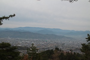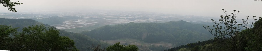 左 虎口か 中央 砥石城 右 上田市街を一望 砥石城自体は山頂の小さな削平地で、せいぜいが櫓レベルに思われる。やはりこの奥の本城こそが城の本体で、砥石城はそれを守るための櫓及び見張り台だったのではないかと考えられる。