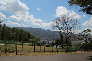 栗きんとんソフトを食べながらの帰り道は下りなので楽である。脇本陣資料館や藤村記念館などに立ち寄ってから駐車場に戻ると、近くにあるという「馬籠城址」に。しかしそこは看板が立っているだけで何も残っていない。地形的にもさほど堅固にも感じられないし、館レベルの城郭だったのだろうか。
