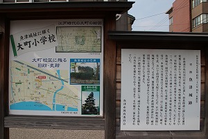 今では小学校の一角に説明板と碑があるのみ 現在は小学校の敷地となっていて遺構は全くといっていいほど残っていないという。確かに現地を訪れてみたが、小学校の校庭の一角に魚津城跡の碑は立っているのだが、城らしい遺構は皆無である。あえて言うならこの辺りの区割りにかつての城の縄張りの痕跡が見られるぐらい。市街地の中の城跡の宿命と言えるようものである。