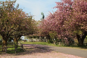 左 守山城本丸入口 中央 向こうに観音像が見える 右 完全に公園化されている ![]()