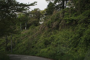 道路沿いに曲輪っぽい構造が見えはするのだが・・・ 確かにかなりの高い位置にある山城なのだが、三大山城と言われても、昨日訪問した松倉城や以前に訪問した増山城に比べると見劣りするという印象は拭えない。