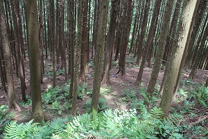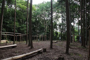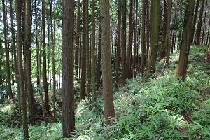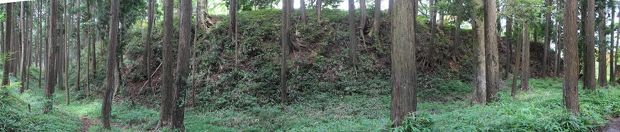 神社の前に車を置くと裏山に登る。城は大きく東西に分かれており、街道に面している西側が正面で東側が奥になる。神社の裏には大ひのきが生えているが、その奥が東の曲輪になっている。東の郭は土塁で東西二つに分かたれていて、周囲は高い土塁で囲まれている。周辺の斜面には多数の帯曲輪らしき構造を見ることが出来る。