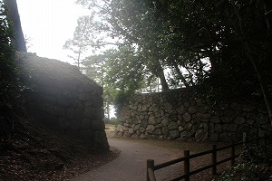 左 西二の丸脇の第一空堀 中央 奥が西本丸 右 西本丸 ![]()
