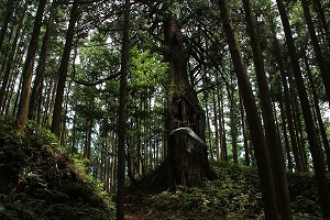 左 白鳥神社 中央 神社の奥を登る 右 東本丸入口前の大ひのき ![]()