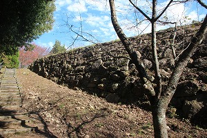 左 本丸登り口 中央 本丸 右 石垣の上には土塁 ![]()